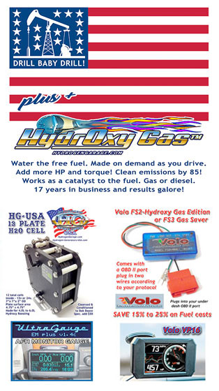 Bob Boyce™ H2O cells make a (-) HHO gas, he calls Hydroxyl Gas™ Beware! Most HHO cells for sale on ebay, etc, only produce common para HHO gas that is ( +-H +-H +-O) gas that does NOT bond and marry + carbon! Bob calls these cells "JUNK CELLS" and they give HHO or Hydroxy Gas™ a bad name. Too many mechanics hate after market products such as HHO, as they tested para hho gas, ONLY. Good news ( 5/25) the Trump Admin will ride over C.A.R.B. who manufacture and mine platinum out of their DEF diesel filters and catalytic converters. With added hydroxy gas@ those exhaust filters are no longer needed. As we now complete the burn and no more hot burning fuel down the exhaust manifold. A Volo type of circuit is needed to tell the ECM, do not enrichen the fuel due to cooler engine running temps. Your engine will run cooler, quieter and with more HP! |